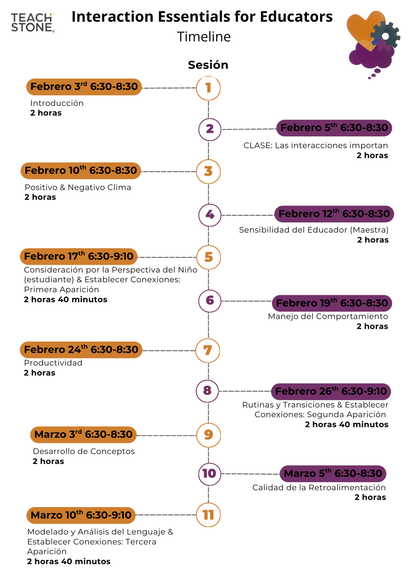 ¡Estás a punto de descubrir una oportunidad increíble para transformar tu aula! Equilibrar la mejora de la calidad educativa con el tiempo y los recursos limitados puede ser complicado, ¡pero no te preocupes! El curso actualizado de Teachstone-Pre-K Interaction Essentials for Educators (anteriormente MMCI y CGC) es la solución que estabas esperando. Esta formación virtual está diseñada específicamente para educadores ocupados que buscan un desarrollo profesional práctico y eficaz que encaje en su apretada agenda. Con más de 20 horas de contenido cautivador, debates emocionantes entre compañeros y valiosos comentarios de facilitadores expertos de CLASE, este curso te permitirá aplicar los principios de CLASE® en tu práctica diaria. Prepárate para ver mejoras sorprendentes en las interacciones en el aula y un impulso significativo en el éxito de tu programa. ¡No pierdas esta oportunidad!
